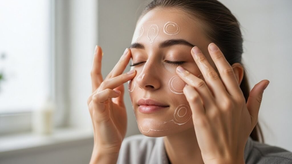 - Halke haathon se poore chehre par upward motion me massage karein.